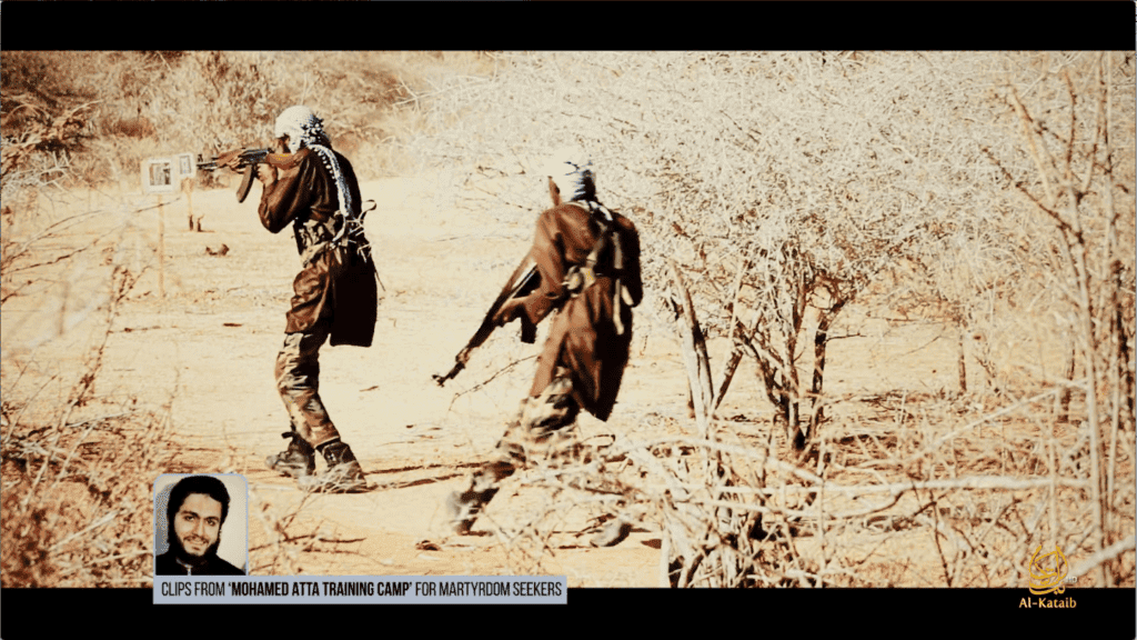 The video concludes with a scene from a training camp for “martyrdom seekers” named after Mohamed Atta, the lead hijacker for the 9/11 attacks inside the US. Jihadists are shown firing at targets set up at the “Mohamed Atta Training Camp,” which is presumably located in Somalia.