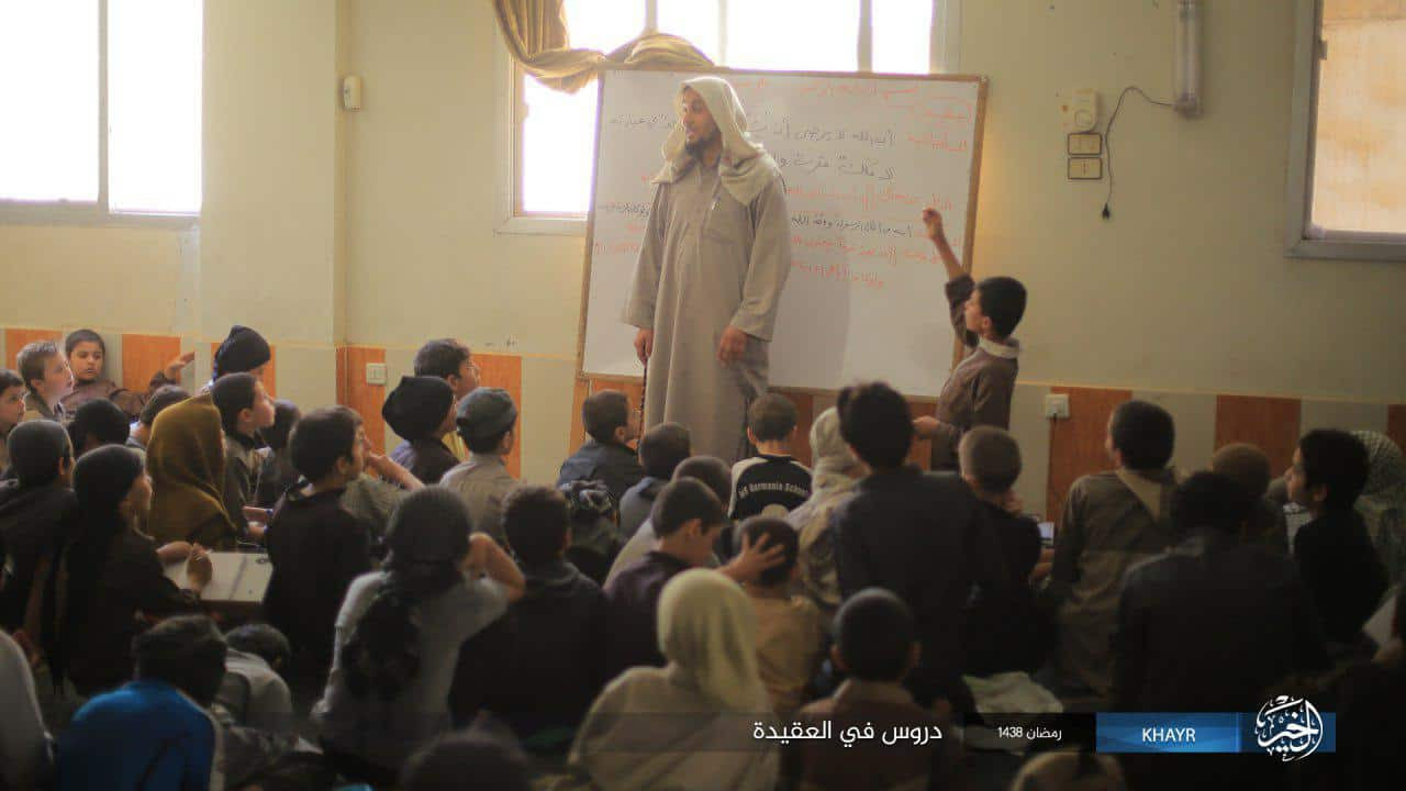 Earlier today, the Islamic State released several images (seen below) of young boys attending “Cubs of the Caliphate” classes in Mayadin. While al-Jazaeri is believed to be dead and the jihadists are under increasing pressure from most sides, the pictures are intended to convey a sense that the caliphate goes on.